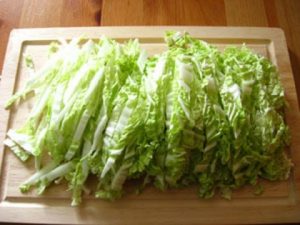 Unisci cavolo, cetriolo, mais, verdure. Aggiungi olio sale e succo di limone.