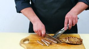 - Tagliare la carne a strisce sottili.
