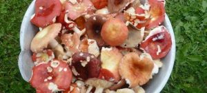 - Prepariamo prodotti. Ordiniamo la russula della foresta fresca, rimuovere i vermi, rimuovere la parte superiore della pelle dai tappi, di grandi dimensioni tagliare i funghi, sciacquare abbondantemente con acqua.