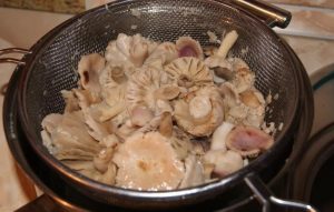 - Riempi con acqua fredda e cuoci per circa 20 minuti in poco tempo acqua salata. Quindi gettiamo i funghi in uno scolapasta in modo che l’acqua completamente in vetro.