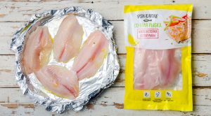 - Copri la teglia con un foglio e mettici sopra la tilapia. Cospargere con olio d’oliva, sale e pepe. Invio per cuocere in forno per 20 minuti fino a cottura a una temperatura di 180 gradi.