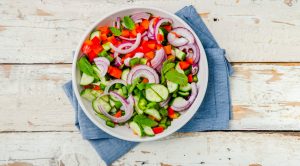 - Mettiamo tutto in un’insalatiera, aggiungiamo la menta e mescoliamo.