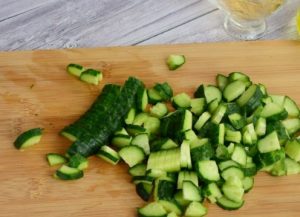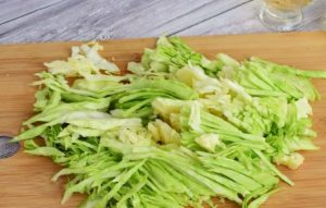 - Mescolare tutte le verdure in una ciotola, aggiungere sale, pepe. ricarica una miscela di aceto di mele, burro e zucchero.