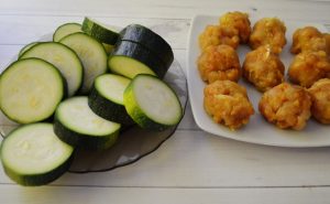 - Arrotolare le palline (con la noce).  zucchine tagliato in cerchi della stessa dimensione, uno e mezzo di spessore centimetri.