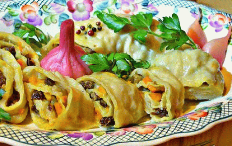 Un delizioso piatto di cucina uzbeka. Gli amanti di Khinkali e Mant di apprezzerò questo delizioso cucinato a casa.