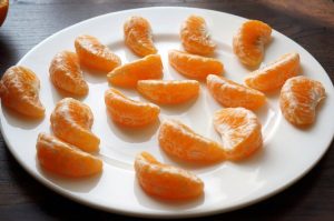 - Puliamo il mandarino, lo dividiamo in fette. Metti nel congelatore per 10 minuti.