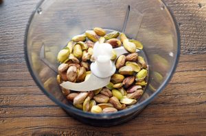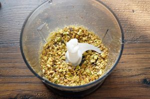 - Pistacchi puliti, mettere in un frullatore e tritare.
