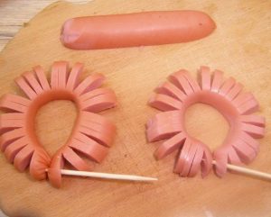 - Salsicce pulite, tagliate insieme. Fai dei tagli attraverso.