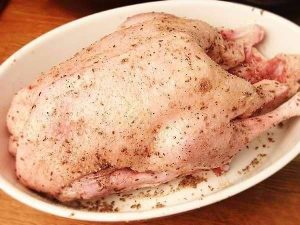 - Risciacqua bene l’oca, se ci sono delle piume, allora cantali, rimuovi il grasso interno.