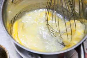 - Riceviamo in anticipo uova e latte dal frigorifero, dovrebbero essere temperatura ambiente. Mescolare lo zucchero con le uova e il sale.