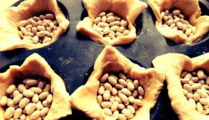 - Premiamo con il giogo di fagioli secchi, inviamo al forno acceso otto minuti a 180 gradi.