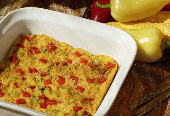 - Unire la polenta con verdure, formaggio grattugiato, paprika, scorza, mescolare bene.