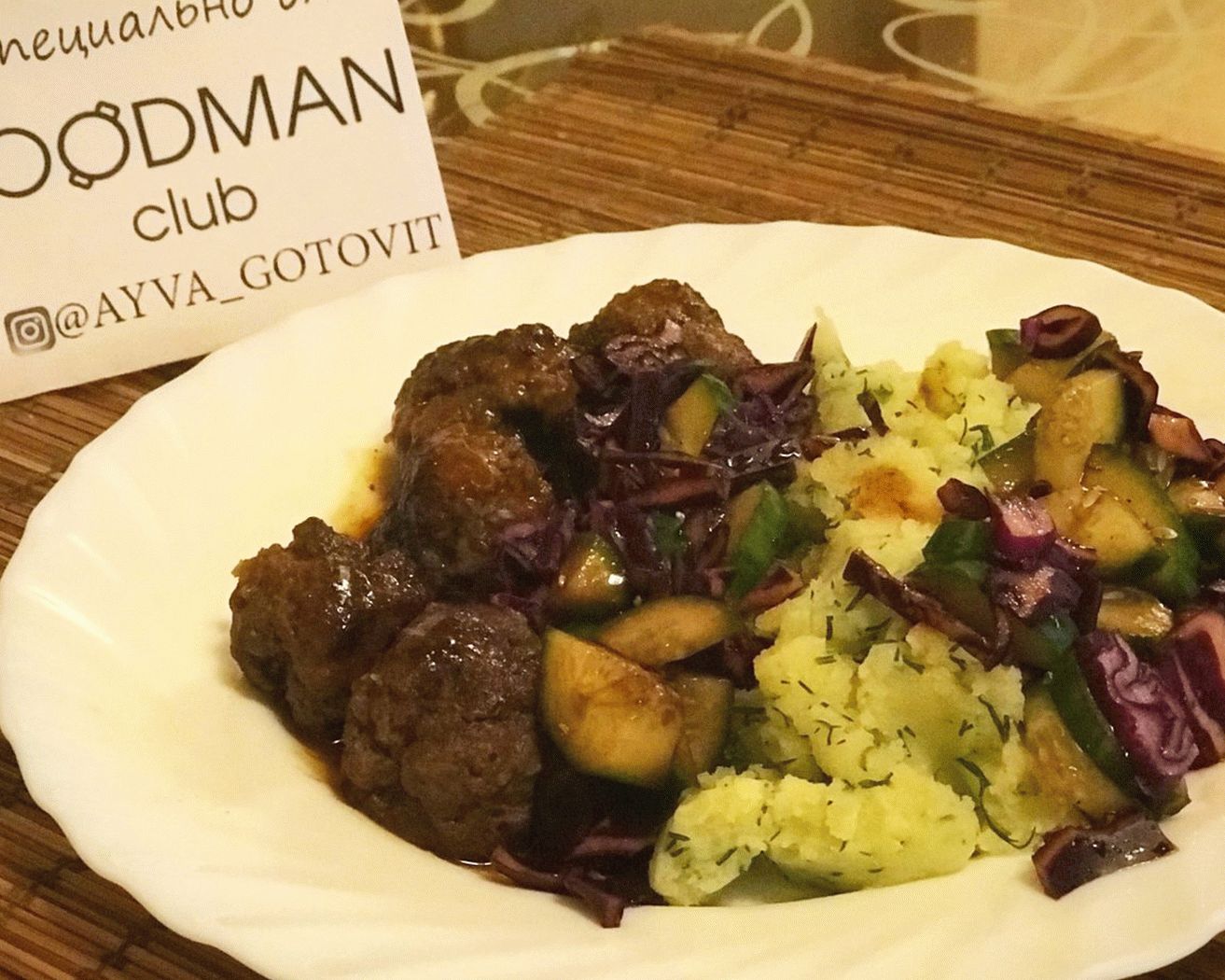 - Metti le polpette di manzo sui piatti con il tritato patate, lattuga e salsa al curry.