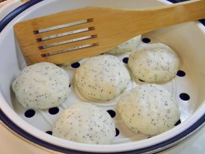 - Con le mani bagnate, modelliamo le palline e disponiamo la doppia caldaia sulla griglia.