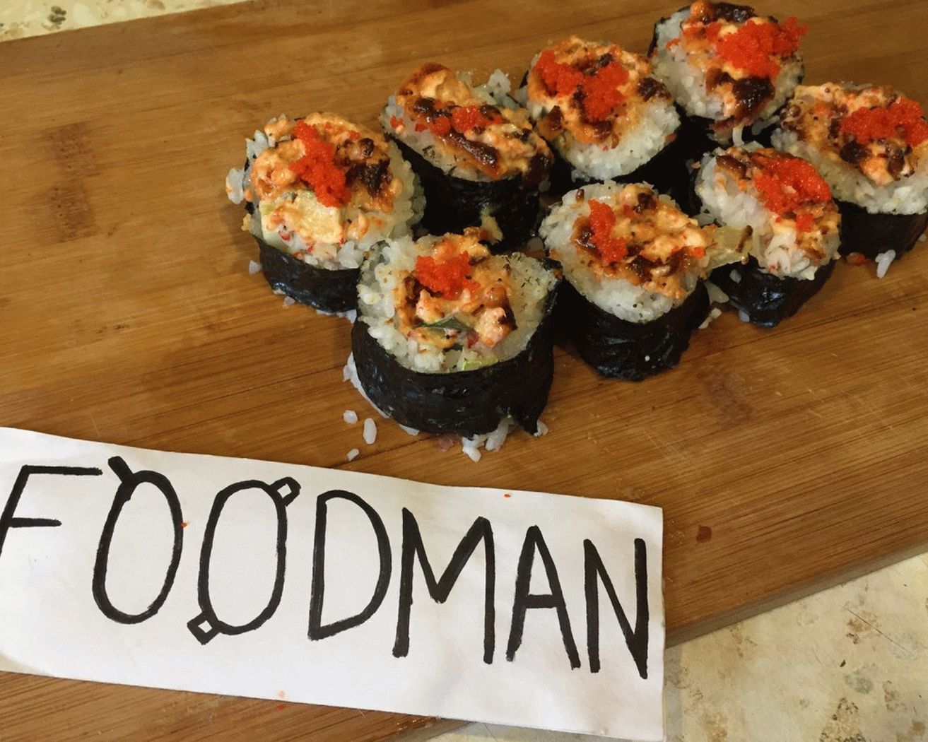 - Dopo che il rotolo è stato cotto, l’ho decorato con il caviale tobiko.