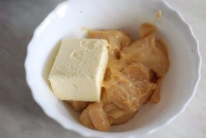 - Apri una lattina di latte condensato, aggiungi noci e burro.
