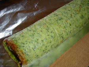- Arrotolare il rotolo e trasferirlo in un foglio, avvolgere e inviare nel forno per altri 15 minuti.