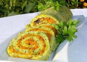 Rotolo fatto in casa insolito, spettacolare, delizioso dalle zucchine ai funghi. Sembra impressionante sul tavolo, molto gustoso, proprio nella stagione delle zucchine.