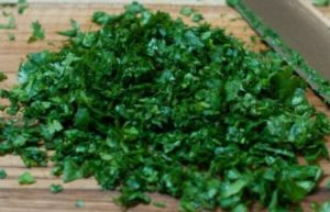 - I verdi sono ben lavati e asciugati. Tritare finemente il coriandolo.