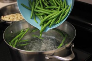 - Lavare i fagiolini in acqua bollente per 3 minuti. acqua scolare, raffreddare i fagioli in acqua ghiacciata.