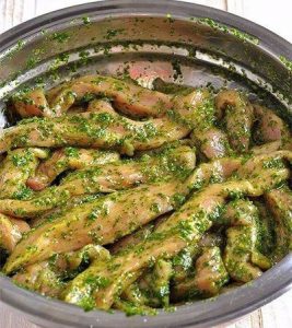 - Ungere la carne con la salsa e cospargere di sale.  Mettiamo in salamoia la carne la salsa risultante per tutta la notte.