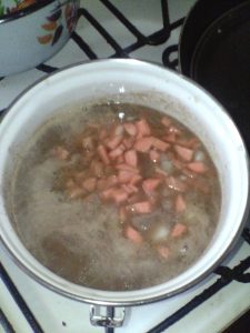 - Tagliamo cipolle e carote a cubetti (le carote possono essere grattugiate grattugia).