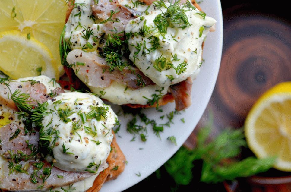 - Raccogliamo tartine. Metti la panna su un panino, seguita dalle fette aringhe e cospargere con succo di limone.