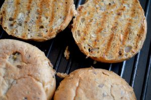 - Alla griglia, asciugare leggermente i panini divisi in due.
