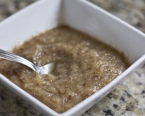 - I semi di lino versano la salsa di mele. Lascia in pace per un’ora o due. Dopo che i semi si gonfiano, rompiamo la miscela con un frullatore.