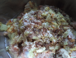 - Metti le cipolle fritte in padella sugli stomaci. sale, pepe, aggiungere aglio tritato e noce moscata.