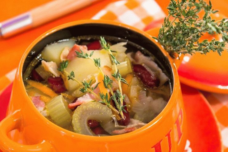Zuppa invernale molto gustosa, fragrante, riscaldante. a la cottura della pancetta a casa può essere sostituita con altre salsicce prodotti.