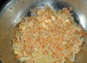 - Tritare il cavolo e far bollire in 1,5 litri d’acqua al massimo prontezza (morbidezza).