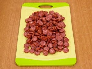 - Tagliare la salsiccia a fettine sottili e far bollire nella zuppa 5-7 minuti.