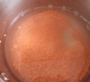 - Versare le lenticchie con acqua, portare a ebollizione, scolare l’acqua.