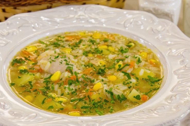 Zuppa delicata, gustosa e leggera. Puoi cucinare a casa con fresco, mais congelato o addirittura in scatola. Lattina Di Pollo sostituire la Turchia.