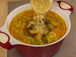 - In brodo leggermente bollente aggiungere il riso lavato.
