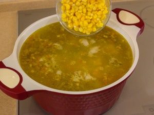 - Quindi aggiungere il mais scongelato, dopo le cinque minuti per rimuovere dal calore.