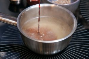 - Scuoti l’uovo con una forchetta. Aggiungere al brodo di pollo bollente salsa di soia hondashi e brodo di pesce secco.