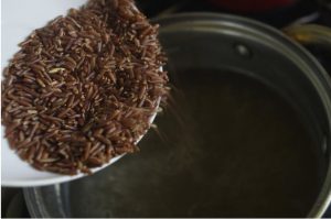 - Versare il riso in brodo bollito, cuocere per 30 minuti.
