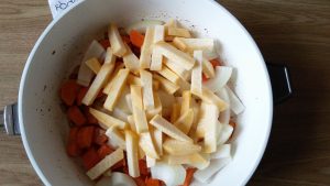 - Tagliare le carote in pezzi grandi.