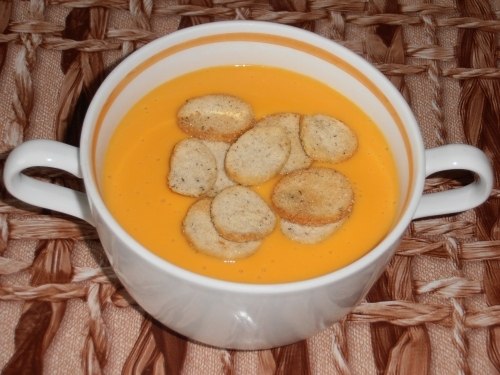 - Tagliare le fette di pane a cubetti e asciugarle in una preriscaldata Forno: servi la zuppa con i cracker! Buon divertimento appetito!